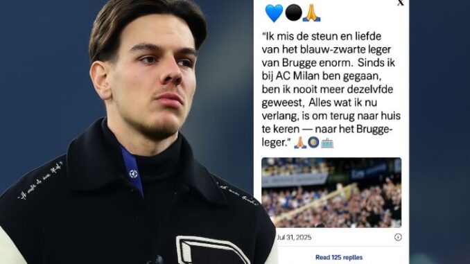 Een verrassend en emotioneel verhaal uit de voetbalwereld zorgt vandaag voor opschudding onder de fans van Club Brugge. De voormalige “gouden jongen” van Blauw-Zwart, die jarenlang werd beschouwd als een van de grootste talenten van de club, heeft eindelijk de stilte doorbroken over zijn vertrek uit Brugge en zijn tijd bij AC Milan. In een openhartig interview sprak de speler over de moeilijke keuzes, de druk van het Europese topvoetbal en zijn diepe verlangen om terug te keren naar waar alles begon — bij Club Brugge.