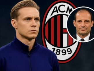 UFFICIALE: L’allenatore dell’AC Milan Massimiliano Allegri ha rivelato che il Milan ha completato al 90% l’ingaggio del centrocampista olandese del Barcellona Frenkie de Jong, in un enorme upgrade rispetto a Tijjani Reijnders in vista della finestra di mercato di gennaio.
